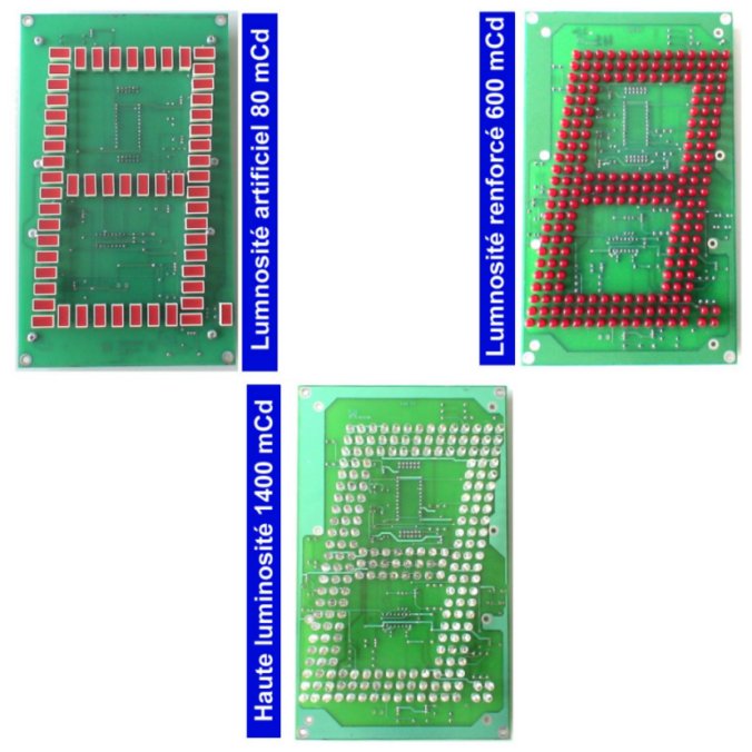 - LED : mono couleur (rouge, vert ou ambre), angle de vision minimum 70°